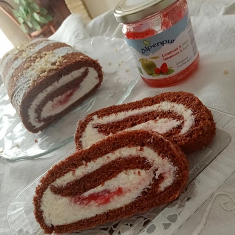 Ieri giorno di festa e io ho deciso di preparare un rotolo ripieno di Ricotta e composta di Lamponi e mela .